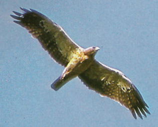 L’aigle botté est un petit aigle, de taille d'une buse, présentant des ailes étroites à bords parallèles et une queue assez longue.