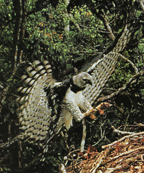 sont plus longues que les l’harpie de s’attaquer aux singes (surtout aux capucins) et à d’autres Elle chasse en restant sous le couvert de la forêt dense et se déplace en