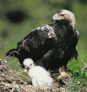 Les couples d’aigles impériaux installent leur aire, le plus souvent, sur un arbre isolé et la réoccupe d’année en année. La femelle pond entre mars et mai 2 à 3 œufs. Elle les couve seule pendant 43 jours. Les jeunes séjournent 65-77 jours au nid. Les couples restent unis toute la vie et sont très