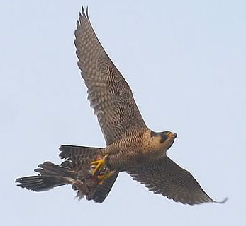 ornithophage, le Faucon pèlerin se nourrit d’oiseaux de taille variable, des
