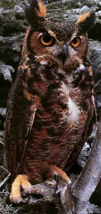 Le grand-duc d'Amérique se nourrit de rongeurs et Il chasse de nuit, prêt à fondre sur une proie et à la tuer de ses
