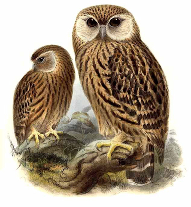 Ninoxe Rieuse ou Chouette à Joues Blanches (Sceloglaux albifacies)